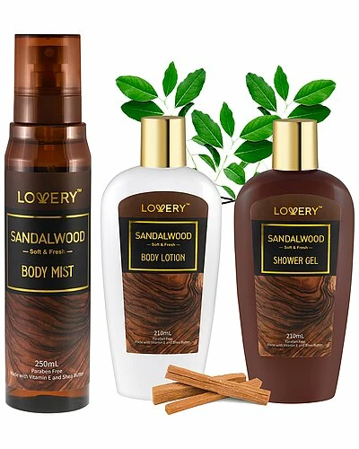 - Design details: premium 3 piece gift set – indulge your senses in a deluxe scent while adding a natural glow to your skin as the bath and body kit is powered with sandalwood infused with sandalwood oil, these bath and body cosmetics are not only beautiful, but rich in antioxidants and essential fatty acids. known for their soothing properties, sandalwoods are perfect for an invigorating and indulgent spa experience!; all-natural formulation – the bath spa kit creates a complete self-care package for women, men and teens. it is formulated with all-natural ingredients, with vitamin e and shea butter, which leaves your skin luxuriously scented, smooth, and hydrated. it also helps prevent dryness and flakiness and keeps skin moisturized and supple. every Lovery product is 100% paraben and cruelty-free.